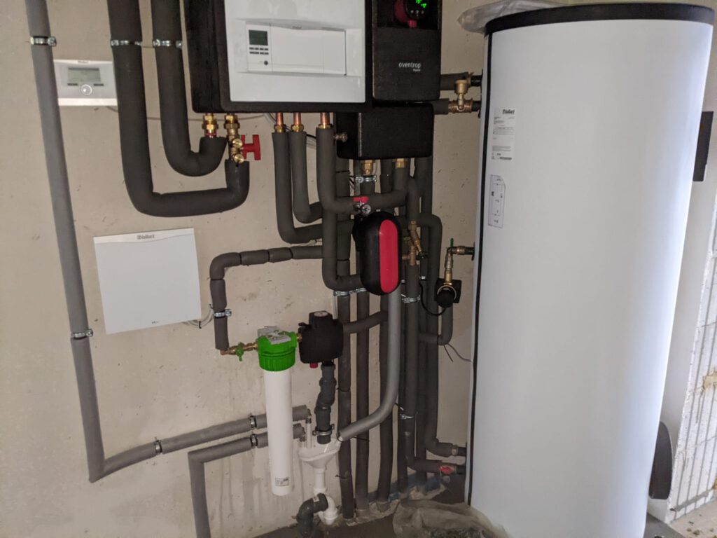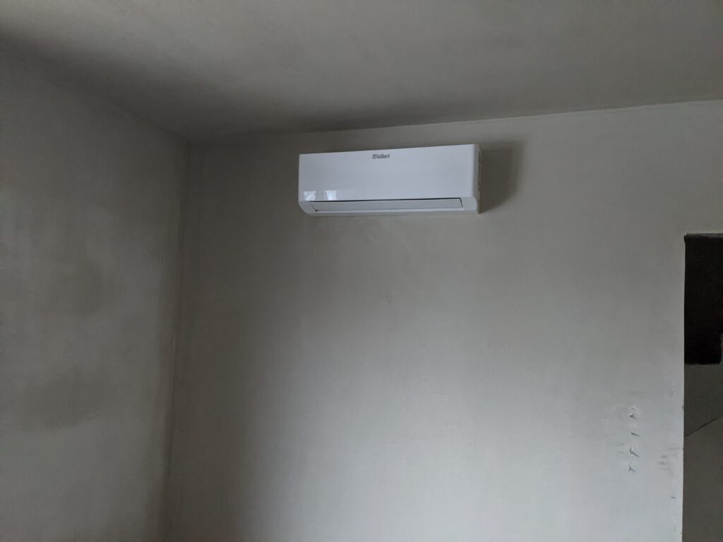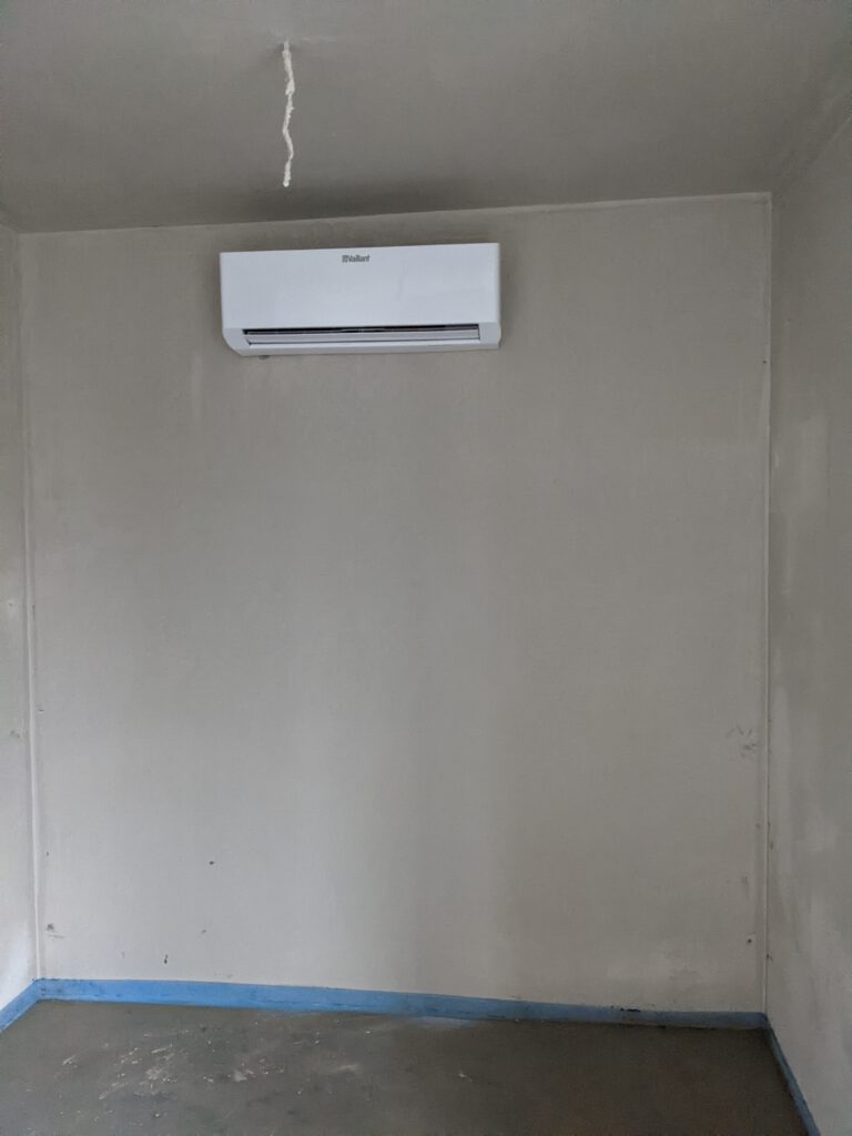 Die Heizungsbauer sind seit Dienstag auch wieder am Start und haben die Wärmepumpe aufgestellt und alle Klimageräte eingebaut. Die Außenaggregate auf die Garage zu hieven, war ein ziemlicher Kraftakt. Hat aber alles gut geklappt und seinen Platz gefunden.