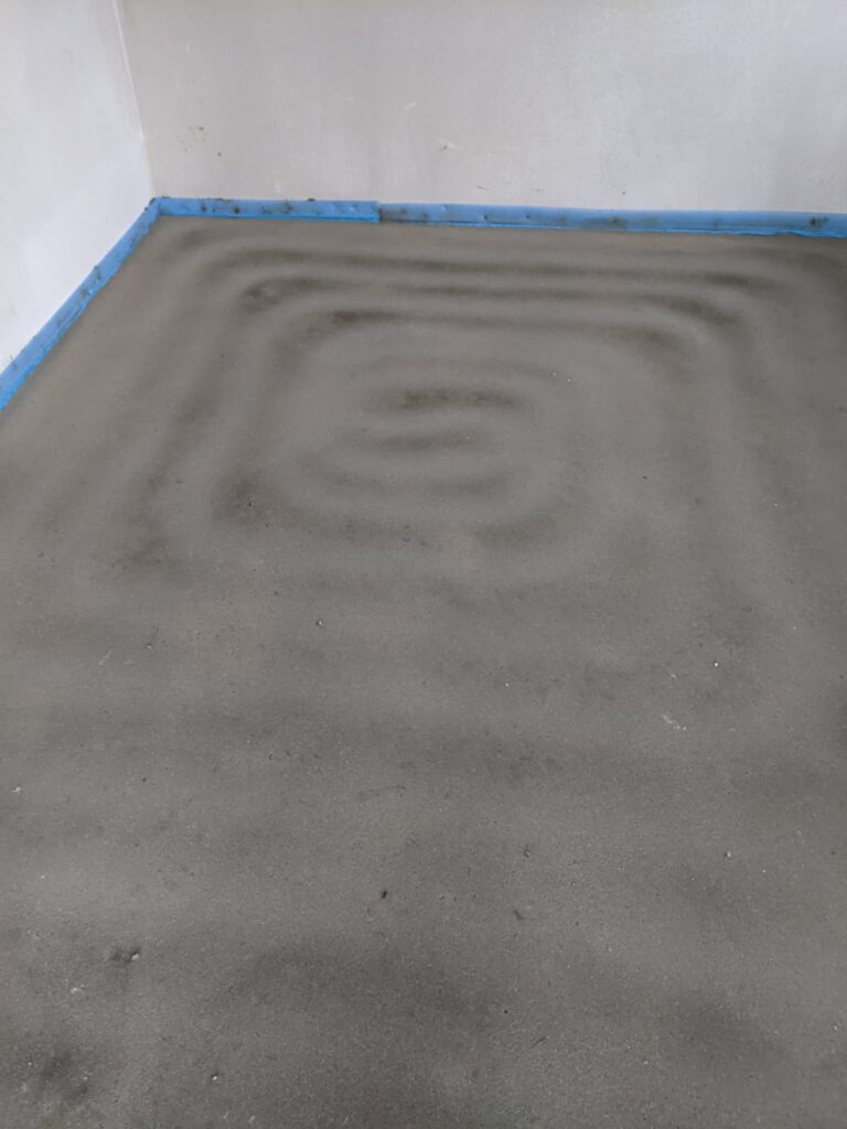Die Heizung ist jetzt seit einer knappen Stunde in Betrieb und man sieht genau, wo die Heizschlangen der Fußbodenheizung verlegt sind 😉