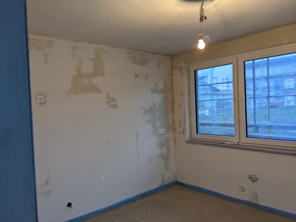 Der Wochenstart zum Montag war noch verschlafen. Nicht wirklich was los auf der Baustelle. Aber immerhin waren unsere Rumänen da und es wurden mal wieder die Fenster abgeklebt. Eigentlich wollten sie wohl diese Woche mit der Gewebeschicht auf dem Außenputz loslegen. Der Wettergott und die Jahreszeiten sind aber dagegen. Bei Minusgraden wird das einfach nichts. Die kalten Temperaturen verhindern aber auch, dass Boden und Wände im Haus zügig trocknen. Vor allem im Obergeschoss ist es noch sehr feucht.