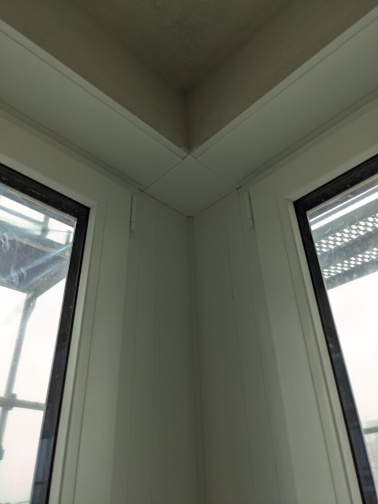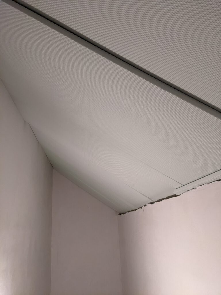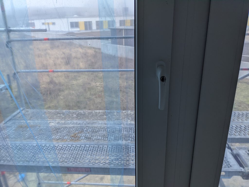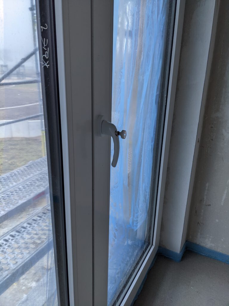 Was war also jetzt in dieser Woche los? Letzten Samstag waren die Fensterbauer noch da und haben die Fenstergriffe angebracht und in den Eckfenstern im Ober- und Untergeschoss die noch fehlende Dämmung angebracht und anschließend Verkleidung draufgepappelt. Nachdem letzte Woche außerdem auch die Klimageräte installiert wurden und wir diese nach Einbau zusätzlich im Entfeuchtungsmodus laufen hatten, stellte sich jetzt bei zwei Geräten ganz fix heraus, dass diese undicht sind und tropfen. Also war letzten Freitag der Heizungsbauer noch da um die Anschlüsse zu prüfen. Die wurden nochmals festgezogen – hat aber nix gebracht. Die beiden Schönheiten haben weiterhin getropft. Also war der Chef dann am Montag höchstpersönlich da, um auf Fehlersuche zu gehen. Es hat sich dann herausgestellt, dass beide Klimageräte zu tief hängen, so dass der Ablauf des Kondenswassers so gerade eben nicht funktionieren kann. Also wurde der Winkel der Ableitung verändert, die Wand wieder zugeputzt und das war es dann jetzt hoffentlich auch.