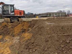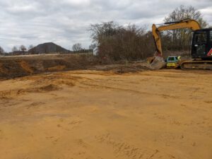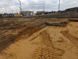 Heute war ein ereignisreicher und informativer Tag für uns. Am Vormittag hatten wir einen Termin mit Sascha, dem Chef der Tiefbauer, um die Gegebenheiten unseres zukünftigen Gartens näher in Augenschein zu nehmen. Die Erde auf unserem Grundstück besteht fast ausschließlich aus Lehm und der Mutterbodenanteil ist so gering, dass es kaum erwähnenswert ist. Dazu kommt, dass durch die Abrissarbeiten des früheren Betonwerks viele Steine und Mauerteile im Boden sind. Die Abrissarbeiten haben den ohnehin festen Untergrund dann so verdichtet, dass die Versickerung von Regenwasser kaum noch möglich ist. Und auf dieser Grundlage später einen wunderschönen grünen und gepflegten Garten zu bekommen – eine Unmöglichkeit. Da wie bereits erwähnt, bald alle Richtungen um unser Haus zugebaut sind, bleibt uns jetzt also nur die Flucht nach vorn.