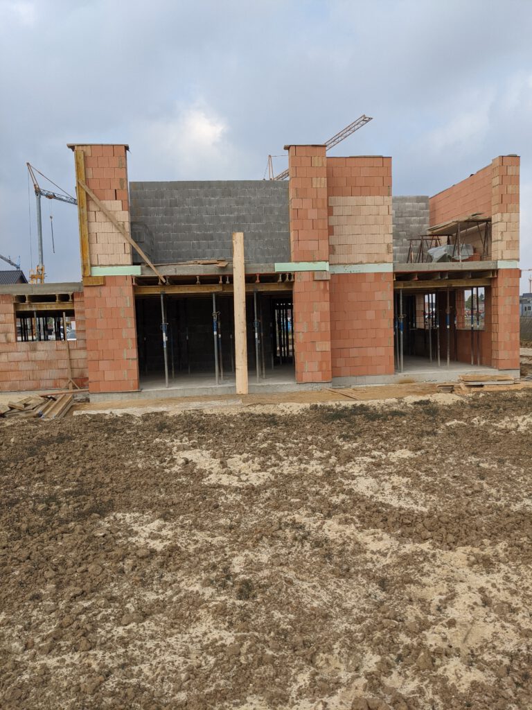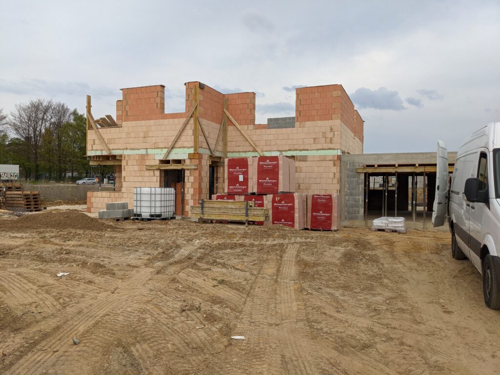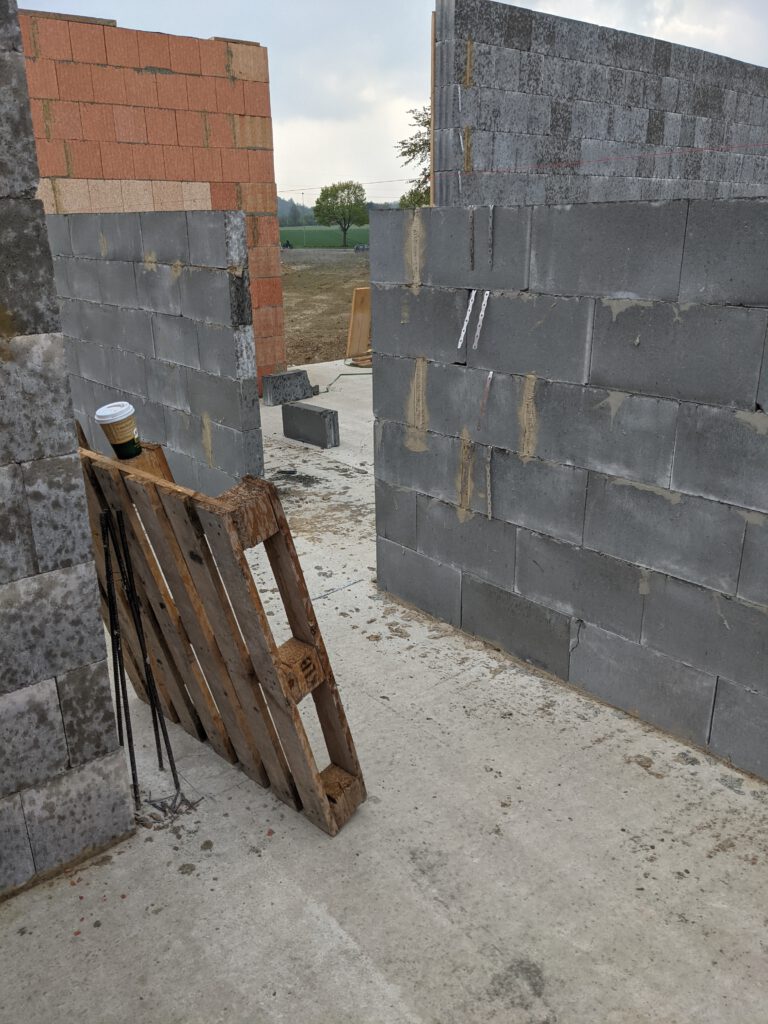 Diese Woche ist so gut wie nichts passiert. Geplant war, dass die Steine für die Außenmauern des Ober- und des Dachgeschosses am Dienstag geliefert werden. Daraus wurde nichts. Sie kamen dann mit einem Tag Verspätung zusammen mit den Steinen für die Innenwände. Am Mittwoch wurde dafür fleißig bis in die Abendstunden gemauert. Die Außenwände und ein Teil der Innenwände stehen also. Am Donnerstag sollten eigentlich die Armierungen für die Obergeschossdecke geliefert und auf dem Garagendach zwischengeparkt werden. Aber auch hier ist nix passiert. Da unser Bauzug für das orthodoxe Osterfest nach Hause gefahren ist, ruht unsere Baustelle also jetzt. Mal schauen, wann es dann weiter geht.