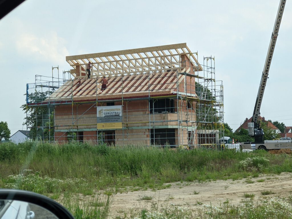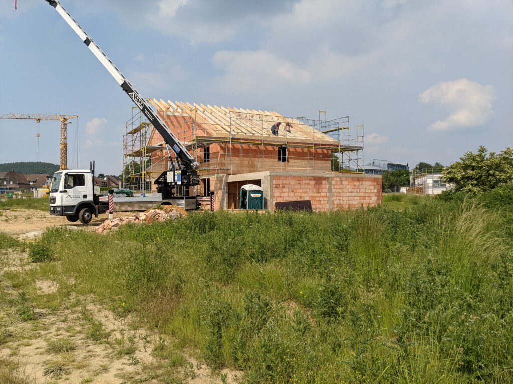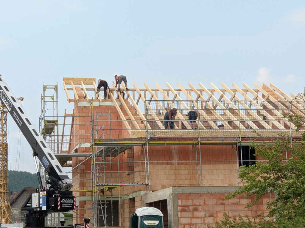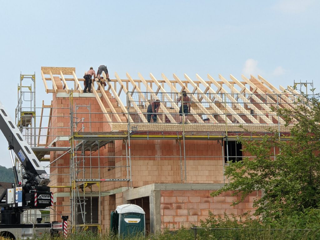 Nachdem gestern durch den Bauleiter die Ansage kam, dass für den Dachstuhl nur zwei Tage veranschlagt sind, kann ich nun folgendes mitteilen: Er hatte Unrecht! Der Dachstuhl ist bereits heute fertig und es sieht voll geil aus 🙂 Es wirkt jetzt auch völlig anders. Aber überzeugt euch doch einfach selbst: