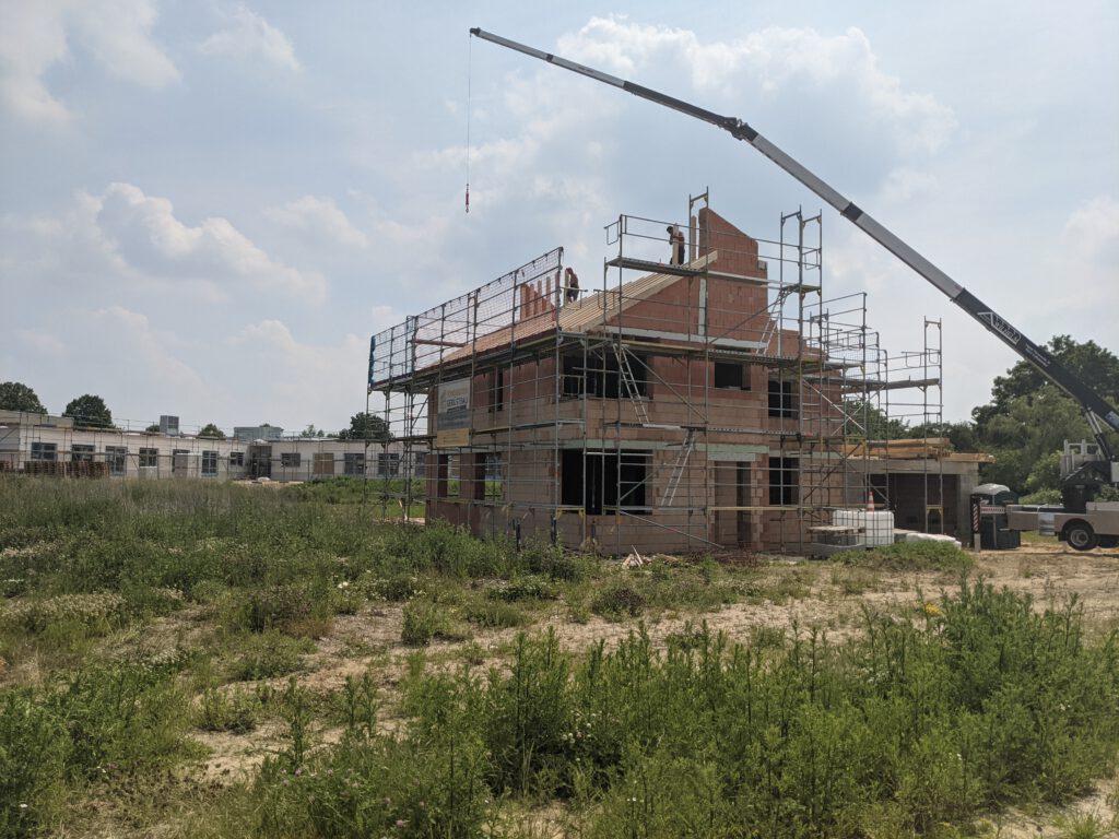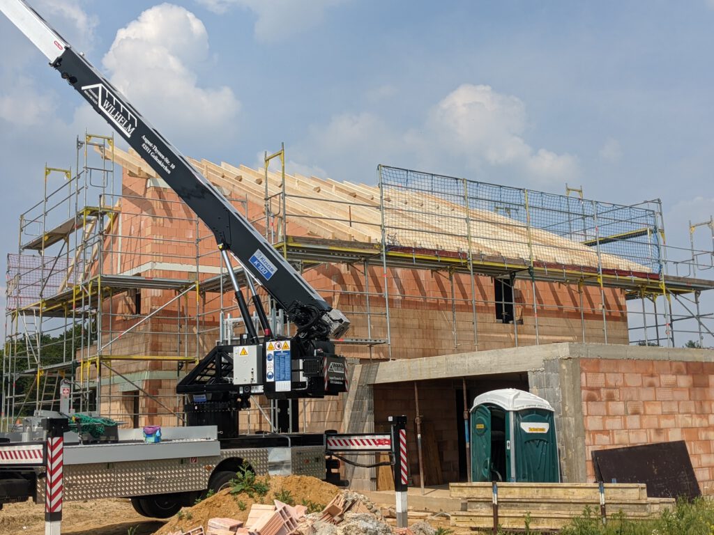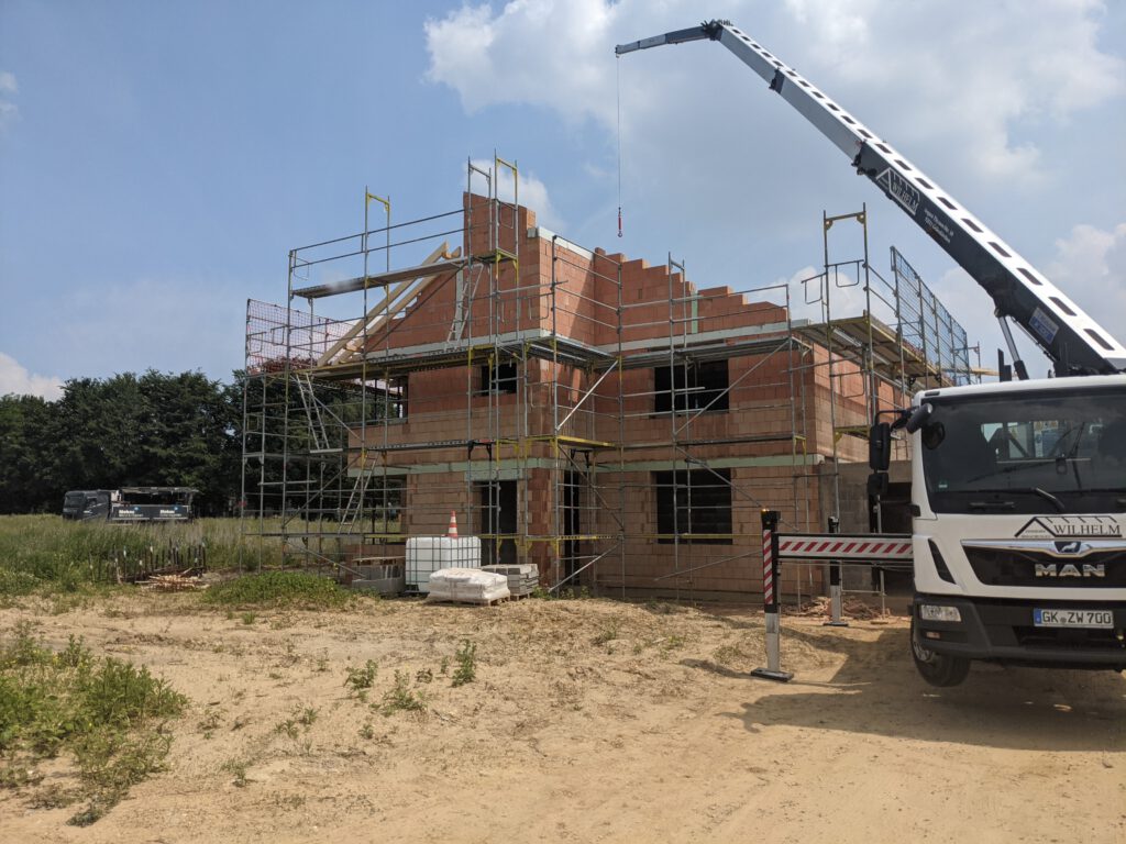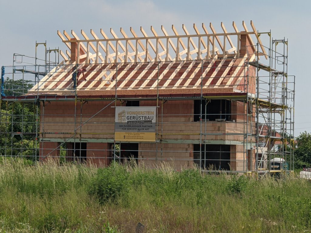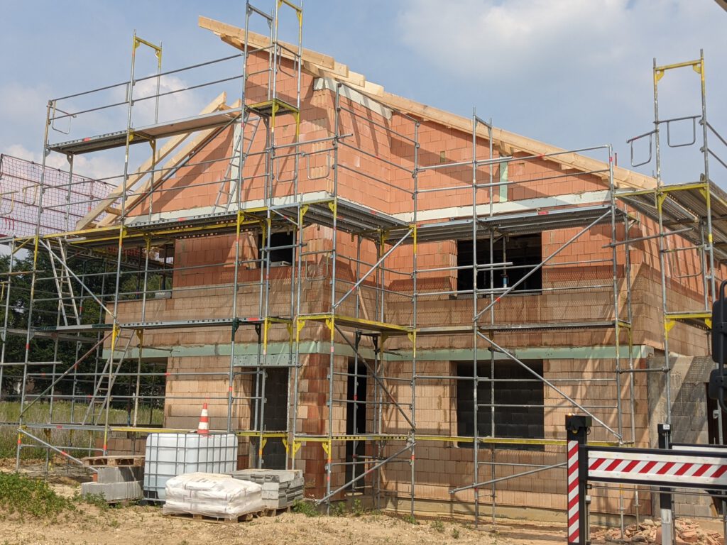 Nachdem gestern durch den Bauleiter die Ansage kam, dass für den Dachstuhl nur zwei Tage veranschlagt sind, kann ich nun folgendes mitteilen: Er hatte Unrecht! Der Dachstuhl ist bereits heute fertig und es sieht voll geil aus 🙂 Es wirkt jetzt auch völlig anders. Aber überzeugt euch doch einfach selbst: